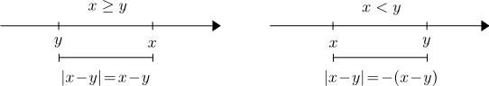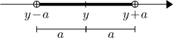 | $| x - y | \lt a \,\Leftrightarrow \, y - a \lt x \lt y + a$ | |