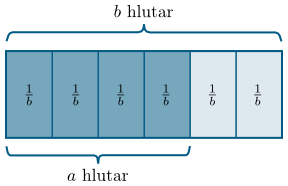 Gerum ráð fyrir að tiltekinni heild sé skipt í $b$ jafna hluta. Þá táknum við stærð $a$ slíkra hluta miðað við heildina með $\frac{a}b$. Einnig segjum við að þessir $a$ hlutar séu $\frac{a}b$ af heildinni.