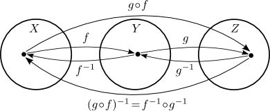 Ef $f: X \to Y$ og $g: Y \to Z$ eru andhverfanlegar varpanir, þá er samskeytingin $g \circ f: X \to Z$ andhverfanleg og andhverfa hennar $(g \circ f)^{-1}: Z \to X$ er gefin með jöfnunni \[ (g \circ f)^{-1} = f^{-1} \circ g^{-1}. \]