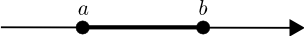 | Bilið frá $a$ til $b$ sem inniheldur báða endapunktana er táknað með $[a, b]$ og það má rita á forminu \[ [a, b] = \{x \in \mathbb{R} \mid a \leq x \leq b\}. \] | ||