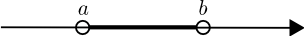 | Bilið frá $a$ til $b$ sem inniheldur hvorugan endapunktinn er táknað með $]a, b[$ og það má rita á forminu \[ ]a, b[ = \{x \in \mathbb{R} \mid a \lt x \lt b\}. \] |