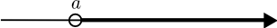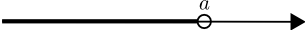 | Bilið frá $a$ til óendanlegs sem inniheldur endapunktinn ekki er táknað með $]a, \infty[$ og það má rita á forminu \[ ]a, \infty[ = \{x \in \mathbb{R} \mid a \lt x\}. \] | ||