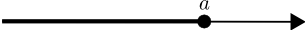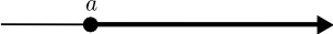 | Bilið frá $a$ til óendanlegs sem inniheldur endapunktinn er táknað með $[a, \infty[$ og það má rita á forminu \[ [a, \infty[ = \{x \in \mathbb{R} \mid a \leq x\}. \] | ||