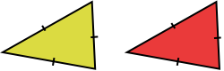Dæmi: Þríhyrningarnir á myndinni eru ekki eins, en hafa þó tvær hliðar og eitt horn eins.