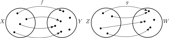 Venn-myndirnar að neðan sýna tvær varpanir $f: X \to Y$ og $g: Z \to W$. Vörpunin $f$ er eintæk því hún varpar ólíkum stökum úr $X$ í ólík stök úr $Y$. Hins vegar er $g$ ekki eintæk því hún varpar tveimur efstu stökunum úr $Z$ í sama stakið í $W$.