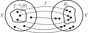 - $f^{-1}(B_1 \cup B_2) = f^{-1}(B_1) \cup f^{-1}(B_2)$.