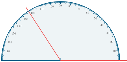 Dæmi:   Gráðuboginn hér að ofan sýnir að rauða hornið er $123^\circ$.