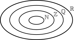 Með öðrum orðum getum við sagt að $\mathbb{N} \subsetneqq \mathbb{Z} \subsetneqq \mathbb{Q} \subsetneqq \mathbb{R}$.