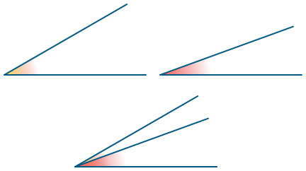Dæmi: Til þess að bera saman rauða hornið og gula hornið á myndinni, þá flytjum við þau til þannig að annar armur þeirra sé sameiginlegur og annað þeirra liggur innaní hinu. Þá sjáum við að hinn armur rauða hornsins er innaní gula horninu. Þess vegna er rauða hornið minna en gula hornið.