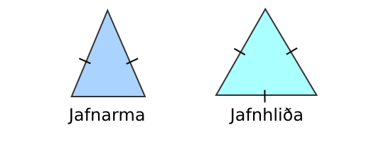 Ef tvær hliðar eru eins í þríhyrningi, þá er þríhyrningurinn sagður vera jafnarma. Þá er þriðja hliðin kölluð grunnhlið þríhyrningsins.