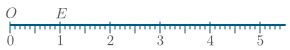 loks númerum við endapunkta einingarstrikanna með náttúrlegu tölunum $0, 1, 2, \ldots$ og byrjum á $O$. Þá er punkturinn $O$ merktur með $0$, punkturinn $E$ merktur með $1$ o.s.frv.