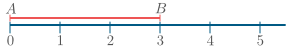 Dæmi: Til að mæla tiltekið strik $AB$ með mælistiku, þá flytjum við mælistikuna einfaldlega þannig að allt strikið liggi á mælistikunni og þannig að upphafspunktur mælistikunnar $O$ liggi á öðrum endapunkti striksins. Þá getum við lesið af mælistikunni hversu mörg einingarstrik eru á milli $A$ og $B$. Þannig sjáum við að lengd striksins $AB$ á myndinni er $3$ lengdareiningar.