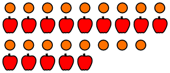 Þetta sýnir að eplin eru færri en appelsínurnar, og þess vegna er $14 < 17$.