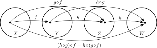 Samskeyting er tengin eins og Venn-myndin að neðan sýnir, þ.e. fyrir allar varpanir $f: X \to Y$, $g: Y \to Z$ og $h: Z \to W$ gildir að \[ (h \circ g) \circ f = h \circ (g \circ f). \]