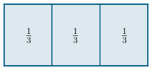 Látum heildina vera rétthyrninginn á myndinni að neðan og skiptum henni í $3$ jafna hluta. Þá getum við annaðhvort sagt að stærð hvers hluta miðað við heildina sé $\frac13$ (lesið: „einn á móti þremur“ eða „einn þriðji“), eða að hver hluti sé $\frac13$ af heildinni.
