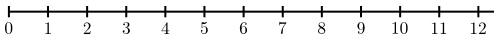 Þessari hálflínu skiptum við í jafnlanga búta, sem hver hefur lengdina $1$, eins og myndin að neðan sýnir. Vert er að taka eftir að hálfínan er endalaus til hægri, svo myndin sýnir aðeins nokkra af bútunum sem fást með þessum hætti.