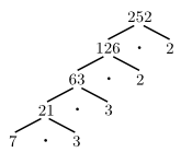 Af myndinni sést að $252$ frumþáttast sem $252 = 2^2 \cdot 3^2 \cdot 7$.