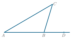 Dæmi: Á myndinni er $\angle CBD$ ytra horn við þríhyrninginn $ABC$. Það er grannhorn $\angle ABC$. Bæði $\angle A$ og $\angle C$ eru fjarlæg innri horn við ytra hornið $\angle BCD$.