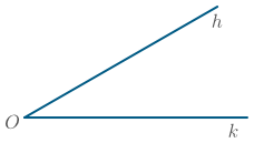 Tvær hálflínur með sama upphafspunkt mynda horn. Upphafspunktur hálflínanna kallast þá oddpunktur hornsins og hálflínurnar kallast armar þess. Á myndinni sést horn með oddpunkt $O$ og arma $h$ og $k$.