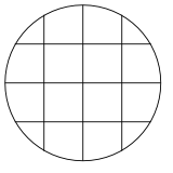 Tveir hornréttir miðstrengir eru dregnir í hring með geislann $2$ og síðan allir mögulegir strengir samsíða þeim í fjarlægðinni $1$, eins og sýnt er á myndinni. Samlögð lengd þessara sex strengja er