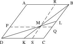 $DL$ og $BK$. Ef flatarmál tígulsins $ABCD$ er 1, þá er flatarmál
