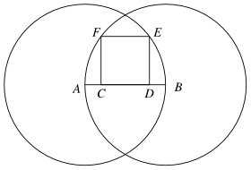 Ferningurinn $C D E F$ hefur tvo hornpunkta sína á strikinu