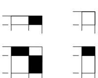hvítar og svartar ferningslaga flísar sem hann leggur í munstur eins og á skákborði.