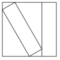 Í ferningslaga bókaskáp eru tvær jafn þykkar og jafn háar bækur skorðaðar eins og myndin sýnir. Ef hæð skápsins er $1$ lengdareining, hver er þá þykkt bókanna?