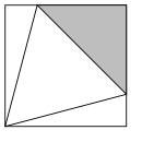 Myndin sýnir jafnhliða þríhyrning, sem er innritaður í ferning. Hvert er hlutfall flatarmáls jafnhliða þríhyrningsins og skyggða þríhyrningsins.