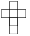 Krossinn hér til hliðar er búinn til úr $6$ eins ferningum. Ummál hans er $7$. Hvert er flatarmál hans?
