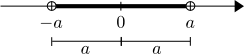 Ef $a \geq 0$ er gefin rauntala má nota þessa fjarlægðartúlkun til að leysa ójöfnur af gerðinni $| x | \lt a$ og $| x | \gt a$ á talnalínunni. Í fyrri ójöfnunni felst verkefnið í að finna þær rauntölur $x$ þannig að fjarlægð $x$ frá $0$ sé minni en $a$ og í seinni ójöfnunni þarf að finna þær tölur $x$ þannig að fjarlægð $x$ frá $0$ sé meiri en $a$. Þetta gefur með hjálp myndanna: