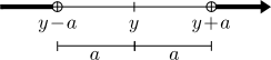 | $| x - y | \lt a \,\Leftrightarrow \, y - a \lt x \lt y + a$ | |