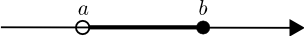 | Bilið frá $a$ til $b$ sem inniheldur hægri endapunktinn en vinstri ekki er táknað með $]a, b]$ og það má rita á forminu \[ ]a, b] = \{x \in \mathbb{R} \mid a \lt x \leq b\}. \] | ||