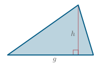 Setning:   Í þríhyrningi hefur ein hliðin lengd $g$ og hæðin á þessa hlið hefur lengd $h$. Flatarmál þríhyrningsins $F$ er þá gefið með jöfnunni \[F=\tfrac{1}{2}gh.\]
