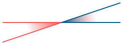 Á myndinni eru rauðu hálflínurnar mótlægar við bláu hálflínurnar og rauða hornið er því mótlægt við bláa hornið.