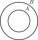 Dæmi: Við vitum þegar samkvæmt dæmi að ofan að $\mathbb{N} \subset \mathbb{Z}$. Einnig vitum við að $-1$ er heil tala en ekki náttúruleg tala, svo $\mathbb{N}$ og $\mathbb{Z}$ eru ekki sama mengið og því getum við líka sagt að $\mathbb{N} \subsetneqq \mathbb{Z}$.