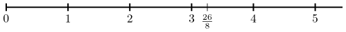 Til að koma $\frac{26}8$ fyrir skiptum við sérhverju striki milli tveggja samliggjandi náttúrulegra talna í $8$ jafna hluta, eins og myndin að neðan sýnir.