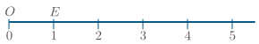 loks númerum við endapunkta einingarstrikanna með náttúrlegu tölunum $0, 1, 2, \ldots$ og byrjum á $O$. Þá er punkturinn $O$ merktur með $0$, punkturinn $E$ merktur með $1$ o.s.frv.