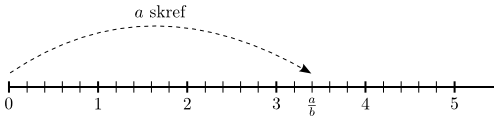 Við byrjum í tölunni $0$ á talnalínunni, tökum $a$ skref af lengdinni $\frac1b$ eftir henni og setjum brotið $\frac{a}b$ á punktinn sem við lendum á.