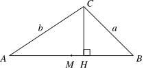 Í þríhyrningi $A B C$ gildir að $b\geq a$. Táknum með $M$ miðpunkt hliðarinnar $c$ og með $H$ fótpunkt hæðarinnar frá $C$. Sýnið að