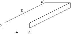 Maur vill komast frá horni $A$ til horns $B$ á rétthyrndum kubbi með