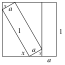 Í ferningslaga bókaskáp eru tvær jafn þykkar og jafn háar bækur skorðaðar eins og myndin sýnir. Ef hæð skápsins er $1$ lengdareining, hver er þá þykkt bókanna?