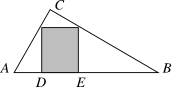 Þríhyrningurinn $A B C$ á myndinni er rétthyrndur, auk þess er $|D E|=\frac{1}{4}|A B|$. Hvað er flatarmál skyggða rétthyrnda ferhyrningsins stór hluti af flatarmáli þríhyrningsins?