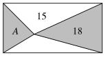 Rétthyrningi með kantlengdirnar $5$ og $10$ er skipt í fjóra þríhyrninga eins og myndin sýnir. Flatarmál tveggja þríhyrninga er sýnt á myndinni. Flatarmál svæðisins sem merkt er með $A$ er