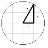 Tveir hornréttir miðstrengir eru dregnir í hring með geislann $2$ og síðan allir mögulegir strengir samsíða þeim í fjarlægðinni $1$, eins og sýnt er á myndinni. Samlögð lengd þessara sex strengja er