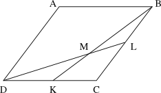 $DL$ og $BK$. Ef flatarmál tígulsins $ABCD$ er 1, þá er flatarmál